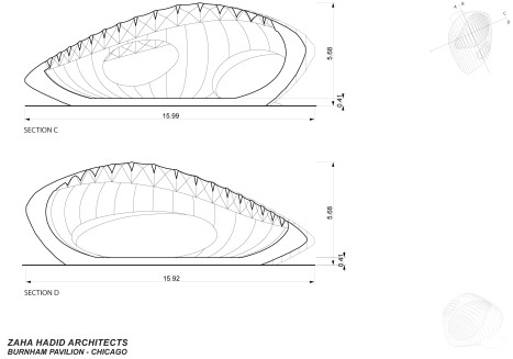 Imágenes cortesía de Zaha Hadid Architects © Michelle Litvin "El Centenario Plan Burnham se trata de celebrar los planes audaces y grandes sueños del Plan visionario Daniel Burnham de Chicago. Se trata de la reinvención y la mejora a escala urbana y cerca de dar la bienvenida al futuro con ideas innovadoras y las tecnologías. Nuestro diseño continúa la tradición de renombre de Chicago de la arquitectura de vanguardia y de corte de ingeniería, en la escala de un pabellón temporal, mientras que la referencia a los sistemas de organización del Plan de Burnham. A continuación, el tejido de recubrimiento utilizando técnicas contemporáneas siglo 21 para generar el fluido, la forma orgánica - mientras que la estructura es siempre articulados a través de la tela tensada como un recordatorio de las ideas originales de Burnham. "